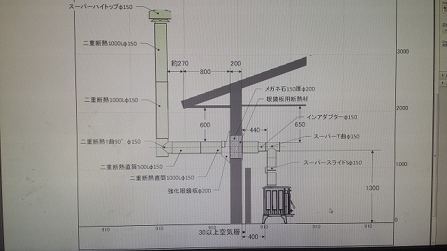ホンマの二重煙突は中国製ですが、ちなみに外国製のブランド品は80cm当たり40,000円ほどするそうでほんとに高い部材です。